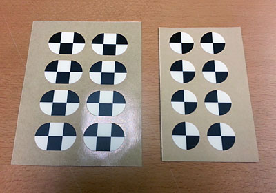DuraMarks are tracking targets (Xpoints), made of a durable adhesive material tested to sustain over 100 cycles of steam sterilization according to ISO 13402-1995. Each kit contains 8 single Xpoints (r=12mm), 8 oval dual Xpoints (r=12mm) and one large “cut your own” sheet with a grid of 63 Xpoints.