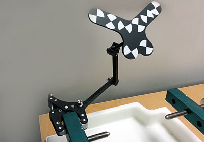Multi-facet aluminum reference body with checkerboard patterns permanently attached. Stable fixation over any shape, and solid joints for easy adjustments.